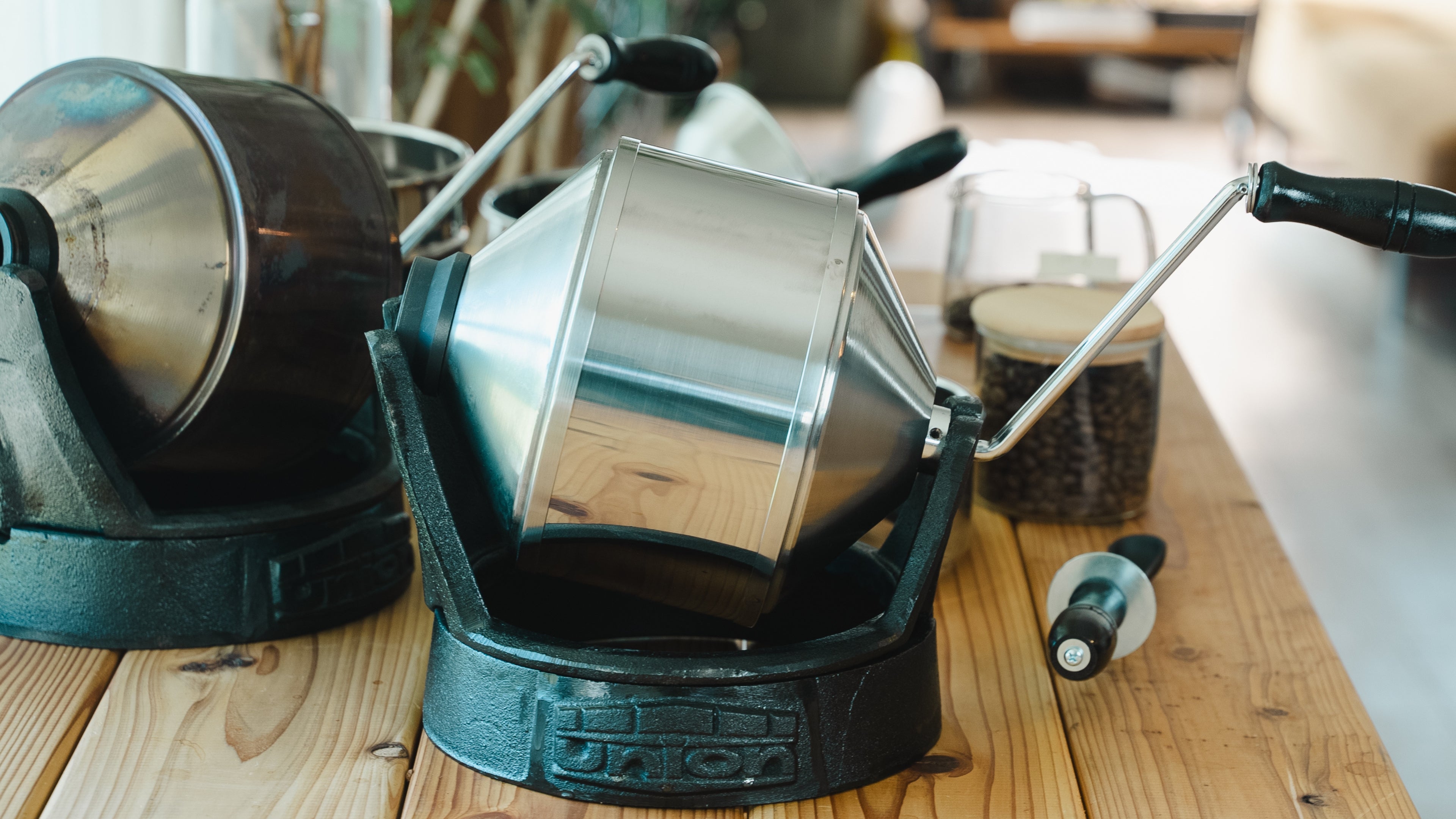 Manual type allows easy and authentic roasting at home. Manual roasting machine made in Japan.